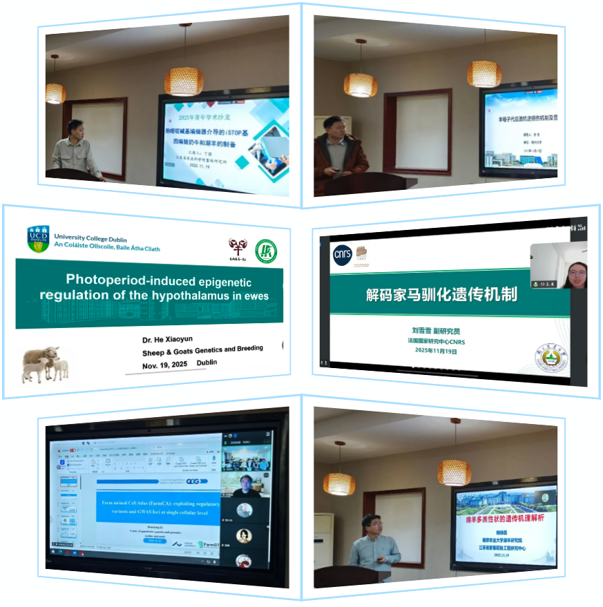 11月19日,江苏省农学会第八期青年学术沙龙在南京农业大学成功举办。本期沙龙以“精准解码遗传奥秘,高效驱动种质革新“为主题,聚焦现代畜牧业发展的前沿科技,吸引了国内外百余名专家学者和青年学子通过线上、线下参与。江苏省农学会秘书长江蛟,南京农业大学科学研究院副院长陈俐,南京农业大学动物科技学院党委书记桑玉昆、副院长李平华、江苏省家畜胚胎工程研究中心负责人王锋及张艳丽、万永杰教授出席活动。