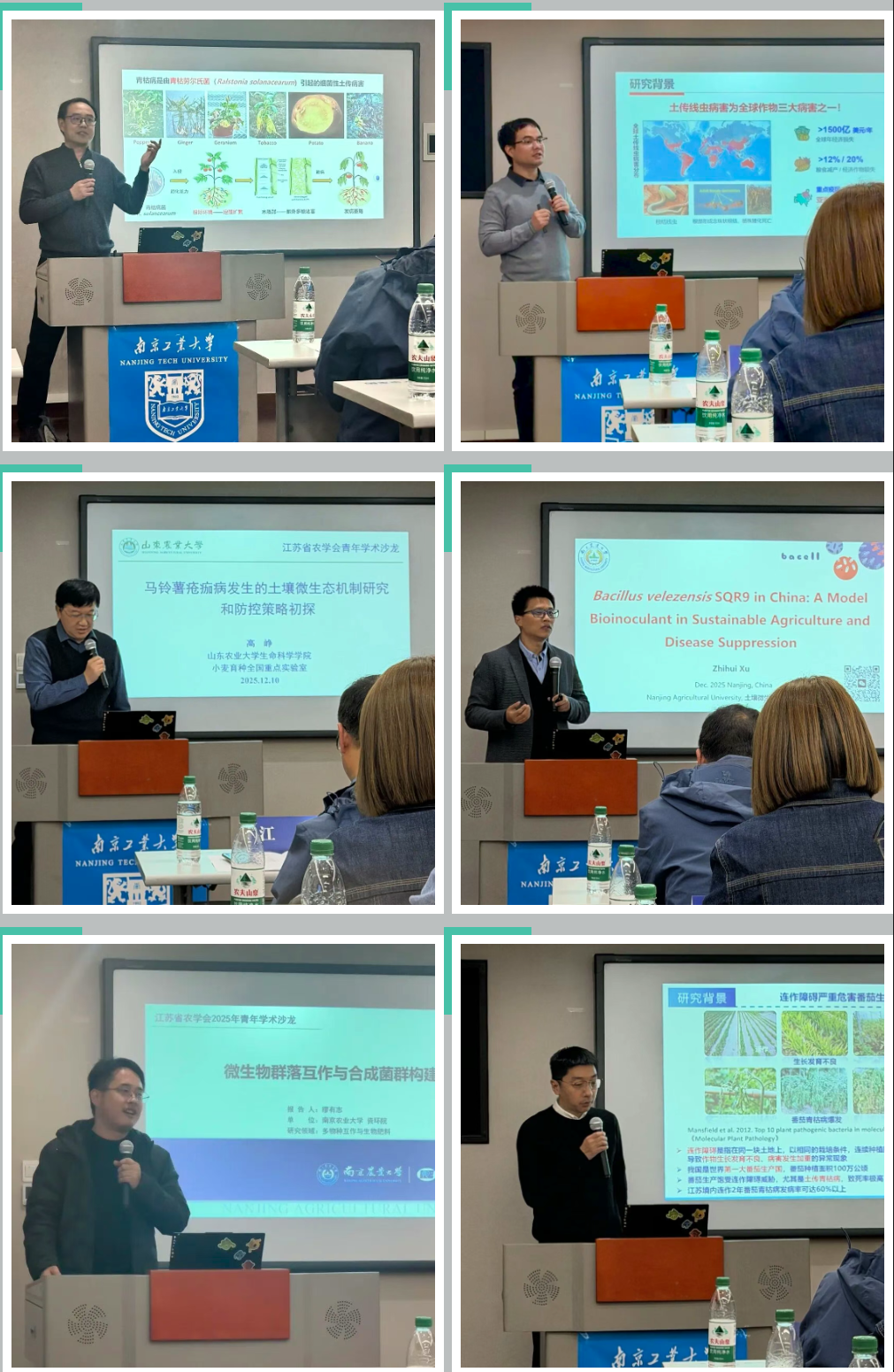 在学术汇报环节,来自河海大学、浙江大学、山东农业大学、南京农业大学、南京工业大学等高校的优秀青年学者依次上台,围绕土壤微生物多样性、微生物与作物互作机制、生态调控技术等方向展开分享。报告内容兼具创新性与实践性,展现了青年科研人员在农业生态领域的积极探索。
