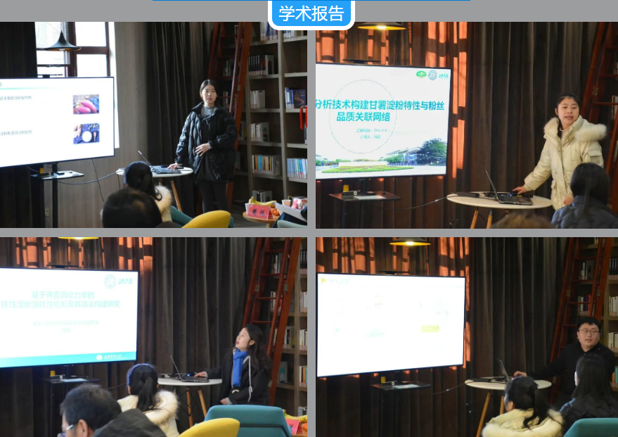学术汇报环节,来自河北省农林科学院、南京财经大学、江苏徐淮地区徐州农业科学研究所、江苏省农科院等单位的优秀青年学者,分别围绕自然等位变异基因调控特性、抗性淀粉酶抗性机制、甘薯淀粉特性与粉丝品质关联网络、改良淀粉品质等方向作了专题报告。报告内容兼具前沿性与实践性,展示了青年科研团队在甘薯全产业链创新中的积极探索与阶段成果。